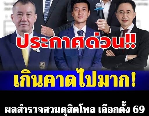 สวนดุสิตโพล” มหาวิทยาลัยสวนดุสิต ส ารวจความคิดเห็นประชาชนทั่วประเทศ เรื่อง “นโยบายกับพรรคการเมืองใน การเลือกตั้ง 69” กลุ่มตัวอย่าง จานวน 2,586 คน (สารวจทางออนไลน์และภาคสนาม) ระหว่างวันที่ 13-16 มกราคม 2569 พบว่า พรรคประชาชนถือเป็นพรรคที่มีความได้เปรียบมากที่สุดถึง 4 นโยบาย คือ ด้านการเมืองและความมั่นคง ร้อยละ 38.14 ด้านการศึกษา ร้อยละ 43.93 ด้านการเกษตร ร้อยละ 35.82 และด้านการแก้ปัญหาทุจริตคอร์รัปชัน ร้อยละ 39.89 ส่วนพรรค เพื่อไทยมีความได้เปรียบ 1 นโยบาย คือ ด้านปากท้อง/ค่าครองชีพ ร้อยละ 35.63 ทั้งนี้ถ้ามีการเลือกตั้ง กลุ่มตัวอย่างจะเลือก พรรคประชาชน ร้อยละ 34.11 รองลงมาคือ เพื่อไทย ร้อยละ 18.37 และเลือก สส.เขตสังกัดพรรคประชาชน ร้อยละ 33.14 รองลงมาคือ เพื่อไทย ร้อยละ 19.49 โดยบุคคลที่อยากให้เป็นนายกรัฐมนตรีคนต่อไป คือ ณัฐพงษ์ (ปชน.) ร้อยละ 34.34 ยศชนัน (พท.) ร้อยละ 19.91 และอนุทิน (ภท.) ร้อยละ 16.13